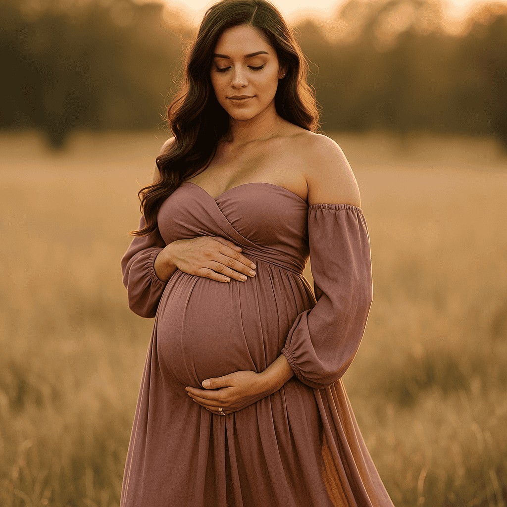 Every little detail — from the way your dress falls, to how your hands rest on your belly, to the soft curls in your hair — is carefully thought out to make you look and feel amazing.